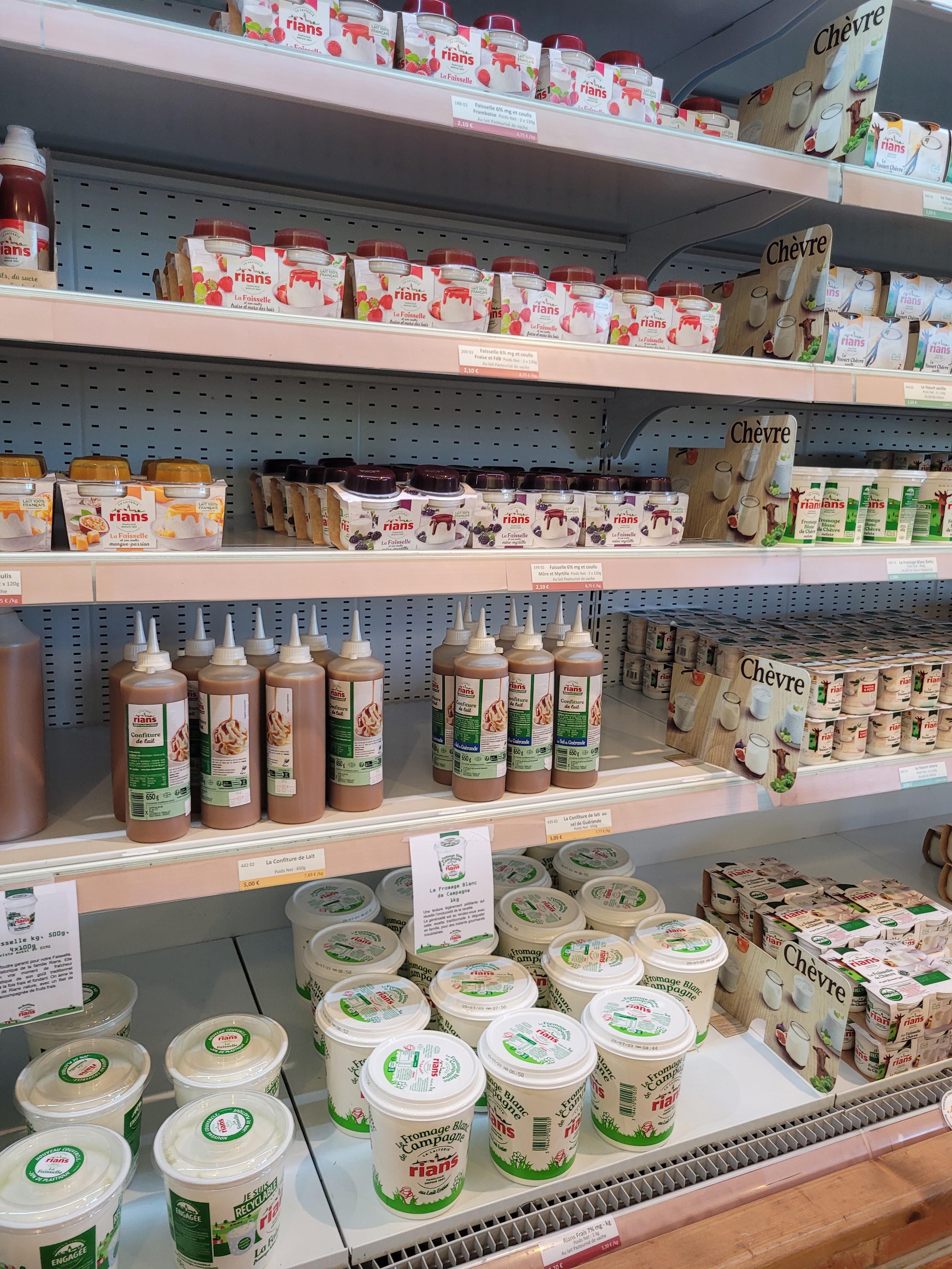 Un magasin d'usine permet d'avoir tous les produits Rians mais aussi les produits laitiers d'autres régions. Très intéressant.
