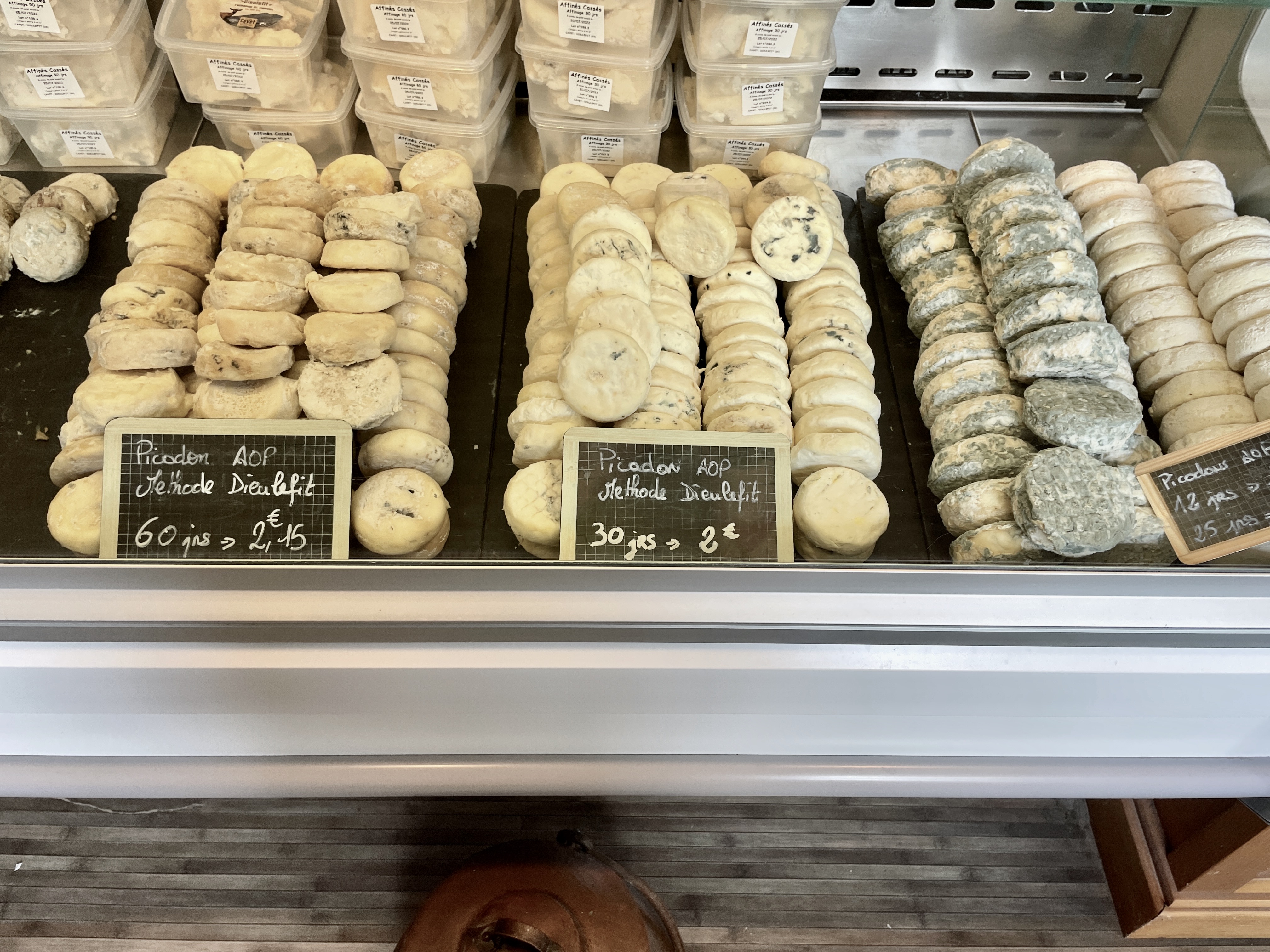 L'achat en boutique nous permet d'acheter des Picodons avec des niveaux d'affinage que l'on ne retrouve pas toujours dans les autres commerces...