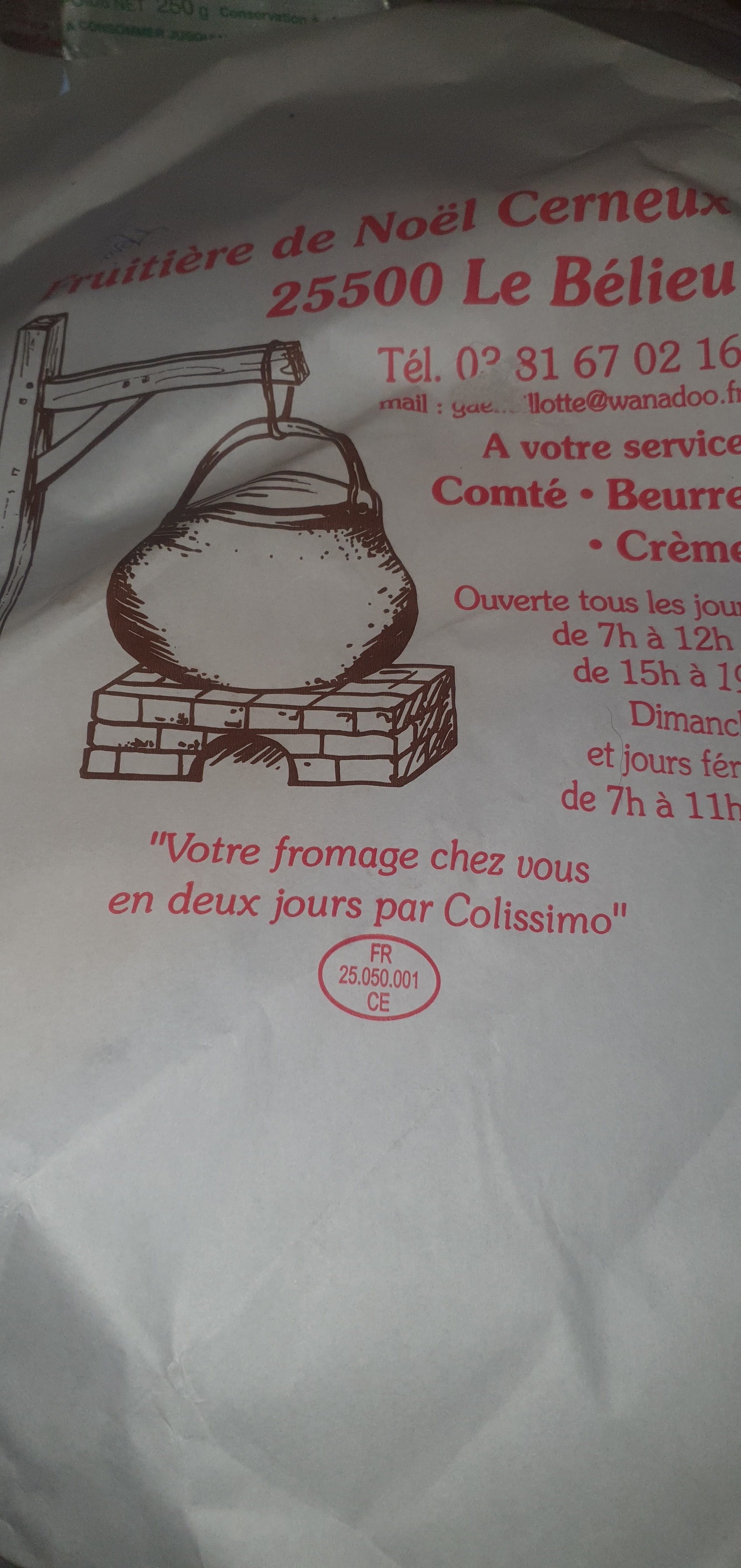Très bons produits, tarifs corrects, parking clientèle et cette Fruitière de Noël-Cerneux est ouverte les dimanches et jours fériés en matinée jusqu'à 11h30, voir photo pour les horaires, c'est nickel.