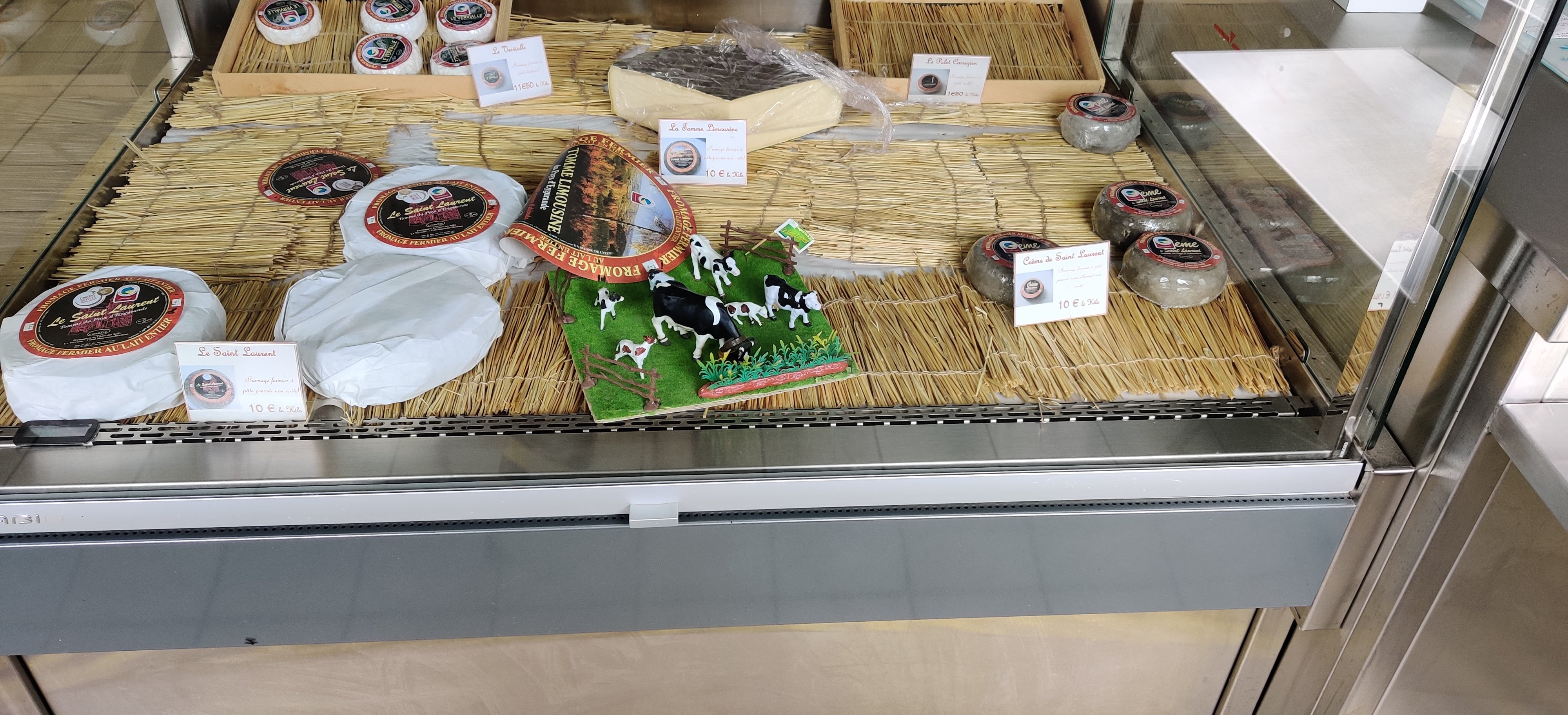 Belle fromagerie avec une bonne variété de spécialités produites à la ferme