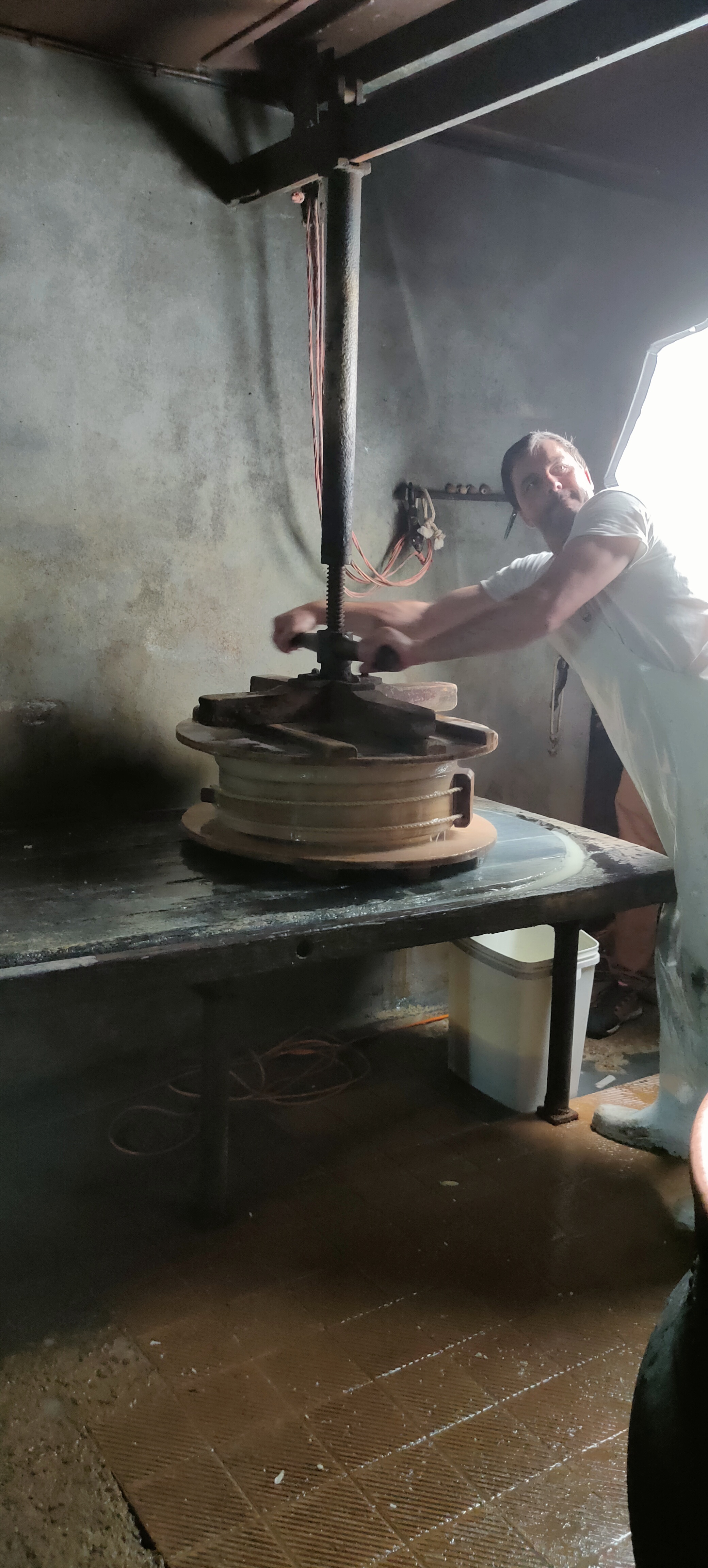 Fabrication du comté devant nous, en admiration devant la passion de jeune qui a repris la fruitière, nous avons appris beaucoup de choses, de plus nous avons acheté du vieux comté qui absolument merveilleux à un prix très raisonnable, si vous êtes dans le Jura faites le détour.