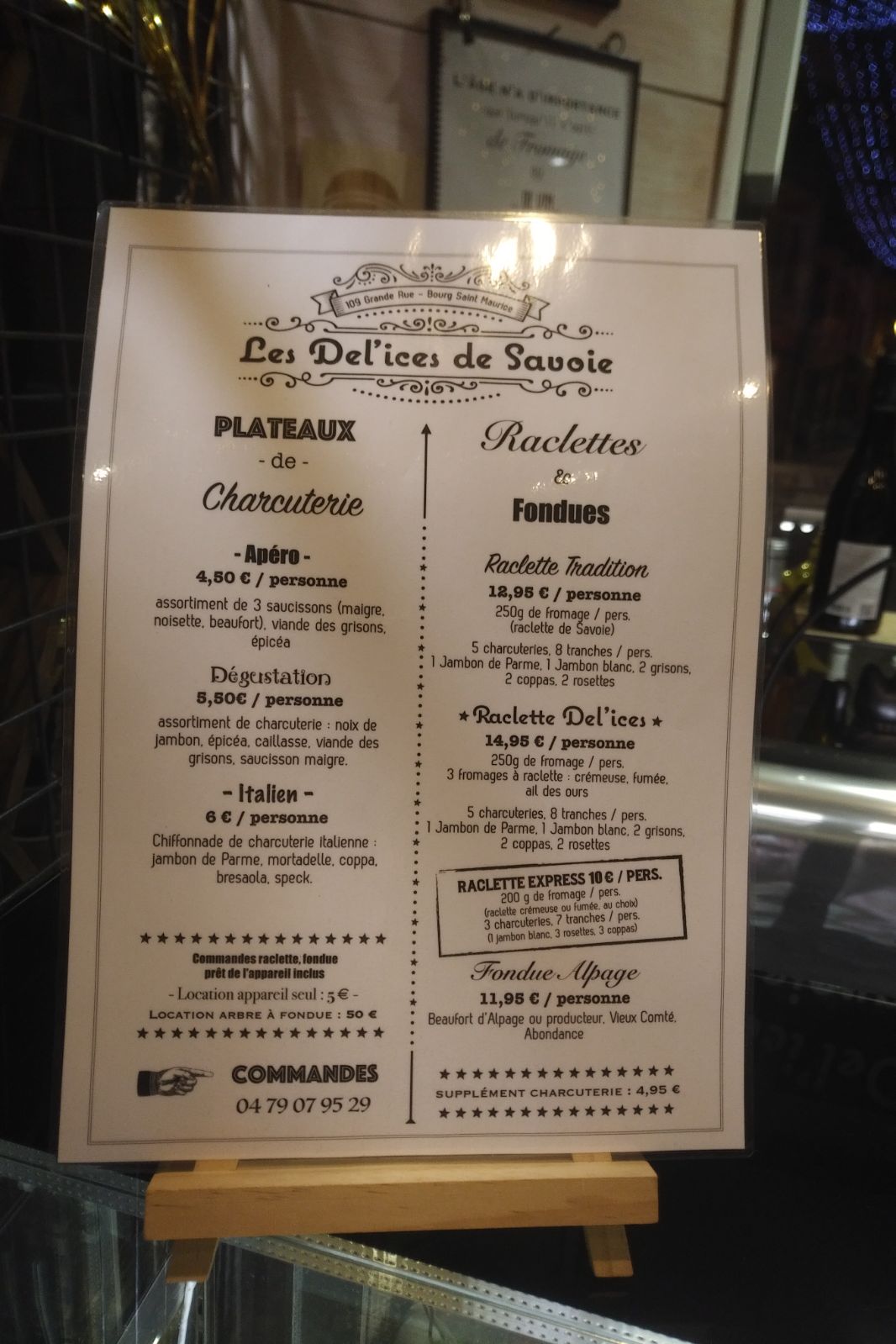 Si vous êtes à Bourg-Saint-Maurice et que vous voulez manger la meilleure raclette qui soit, c’est chez Les Del’ices de Savoie qu’il faut aller ! Un large choix de fromages à raclette, avec des goûts originaux et régionaux, venant de petits producteurs du coin. Un plateau raclette est proposé, vous pouvez commander et, à coup sûr, vous régaler ! N’hésitez pas !